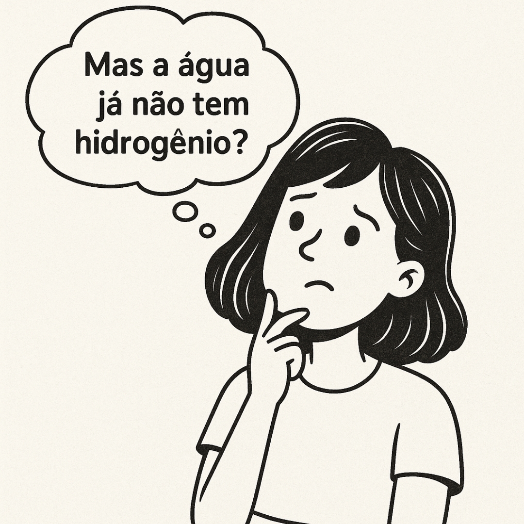 “Ué, mas a água já não tem hidrogênio? Afinal, é H2O duas partes de hidrogênio e uma de oxigênio!”