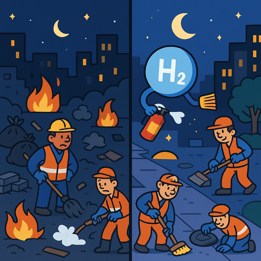 De forma lúdica: o H2 é como um “mensageiro microscópico” que apaga incêndios tóxicos e, ao mesmo tempo, entrega recados às células para que trabalhem em harmonia.